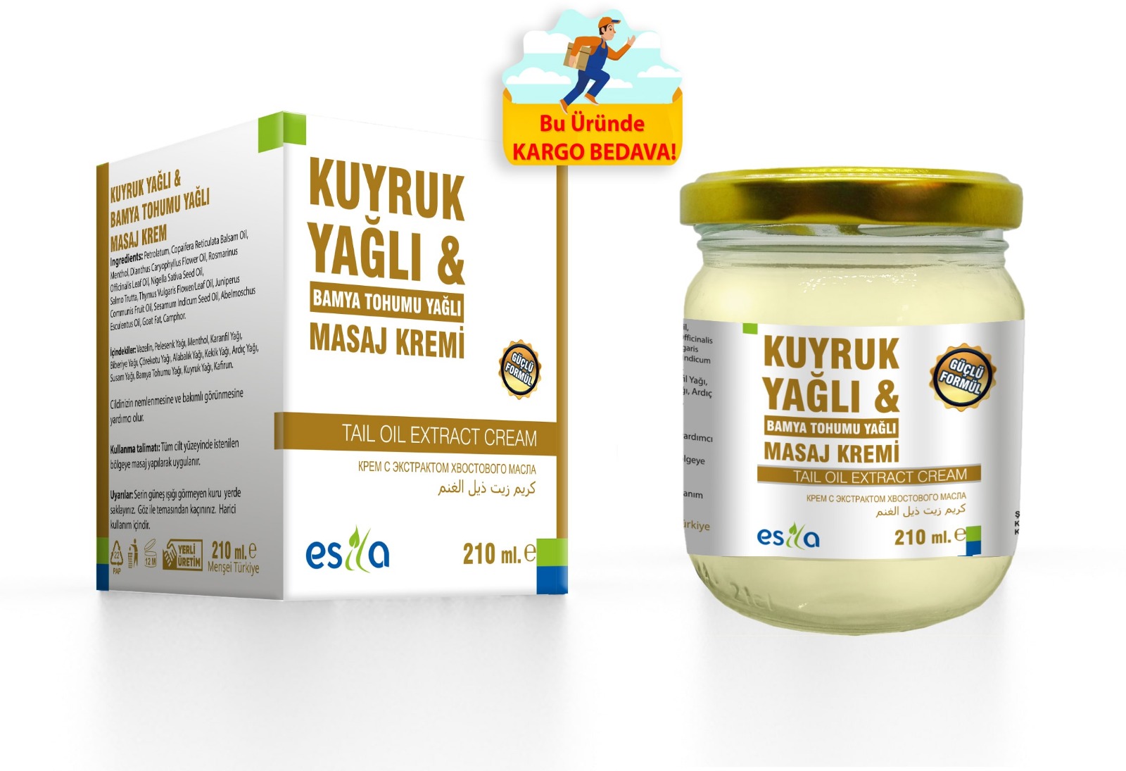 Esila Kuyruk Yağlı Krem, doğal kuyruk yağı, zengin vitaminler ve besleyici yağlarla formüle edilmiştir. Paraben ve parfüm içermemesi nedeniyle, cilt sağlığınıza zarar vermeden güvenle kullanılabilir.