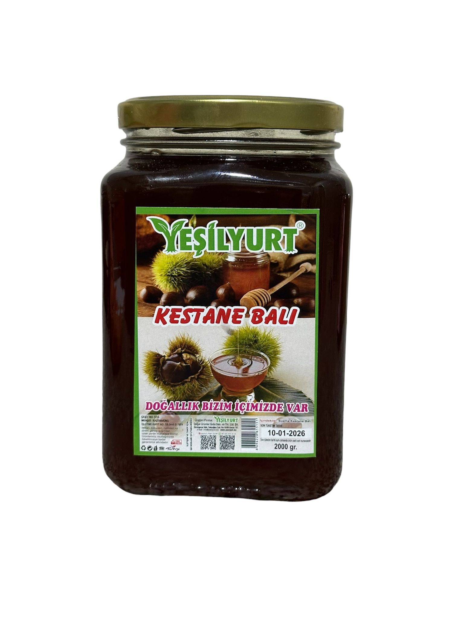 Yeşilyurt Doğal Kestane Balı, doğanın sunduğu eşsiz lezzeti ve sağlığa faydalarıyla dolu, tamamen doğal bir üründür. 2000 gramlık paketlenmesiyle her evde rahatlıkla kullanılabilecek bu bal, Kestane ağaçlarından hasat edilen polenlerin ve nektarların bir araya gelmesiyle elde edilmiştir. Kıvamı yoğun, rengi koyu ve karakteristik bir aromaya sahip olan bu bal, doğanın muhteşem bir armağanıdır.